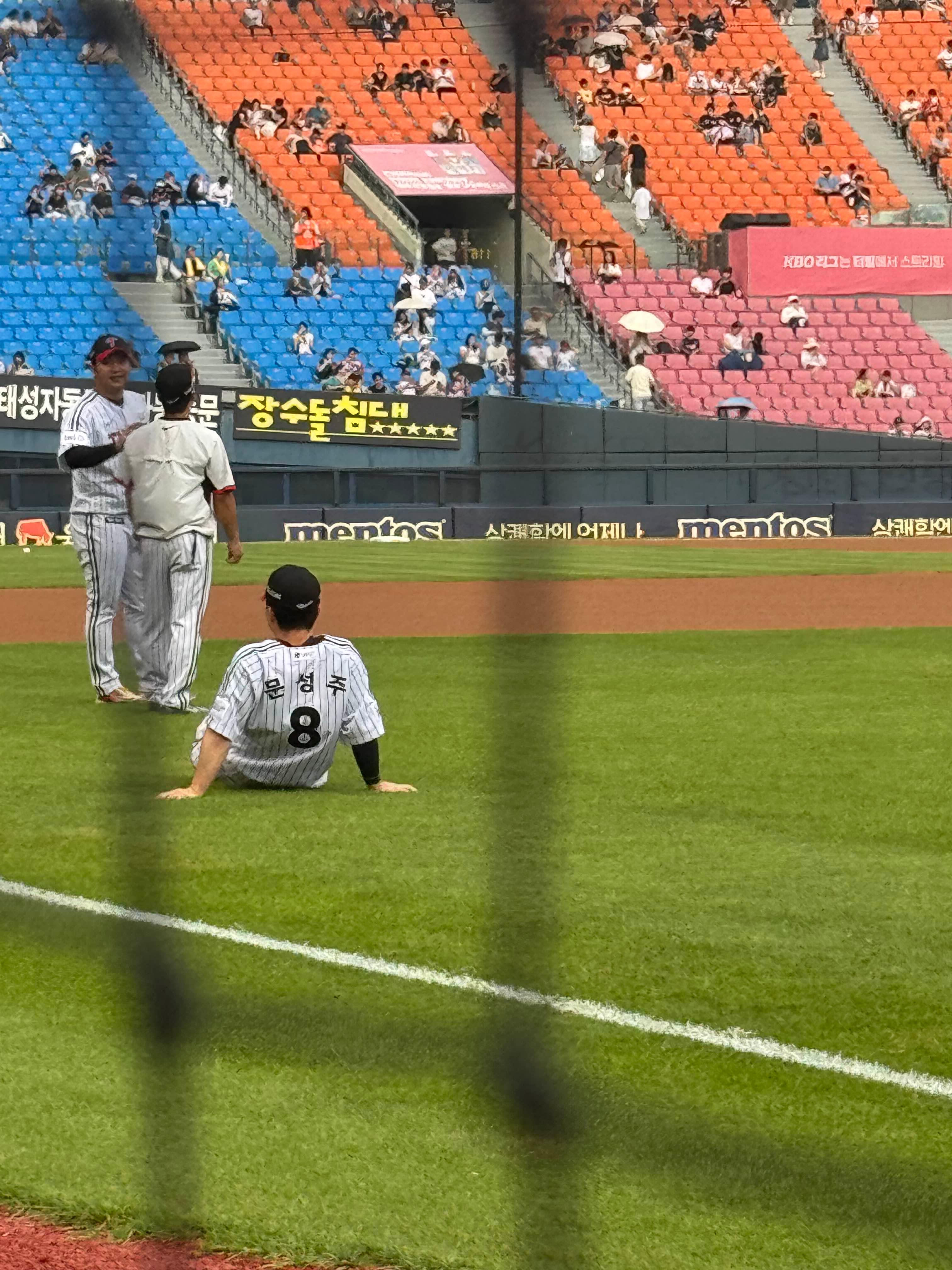 (옆 자리 앉으신 분께 여쭤보니 잠실 야구장 특성상 그물 밑으로 유니폼 전달이 어려워서 싸인을 잘 안 해준다고 하더라구요)