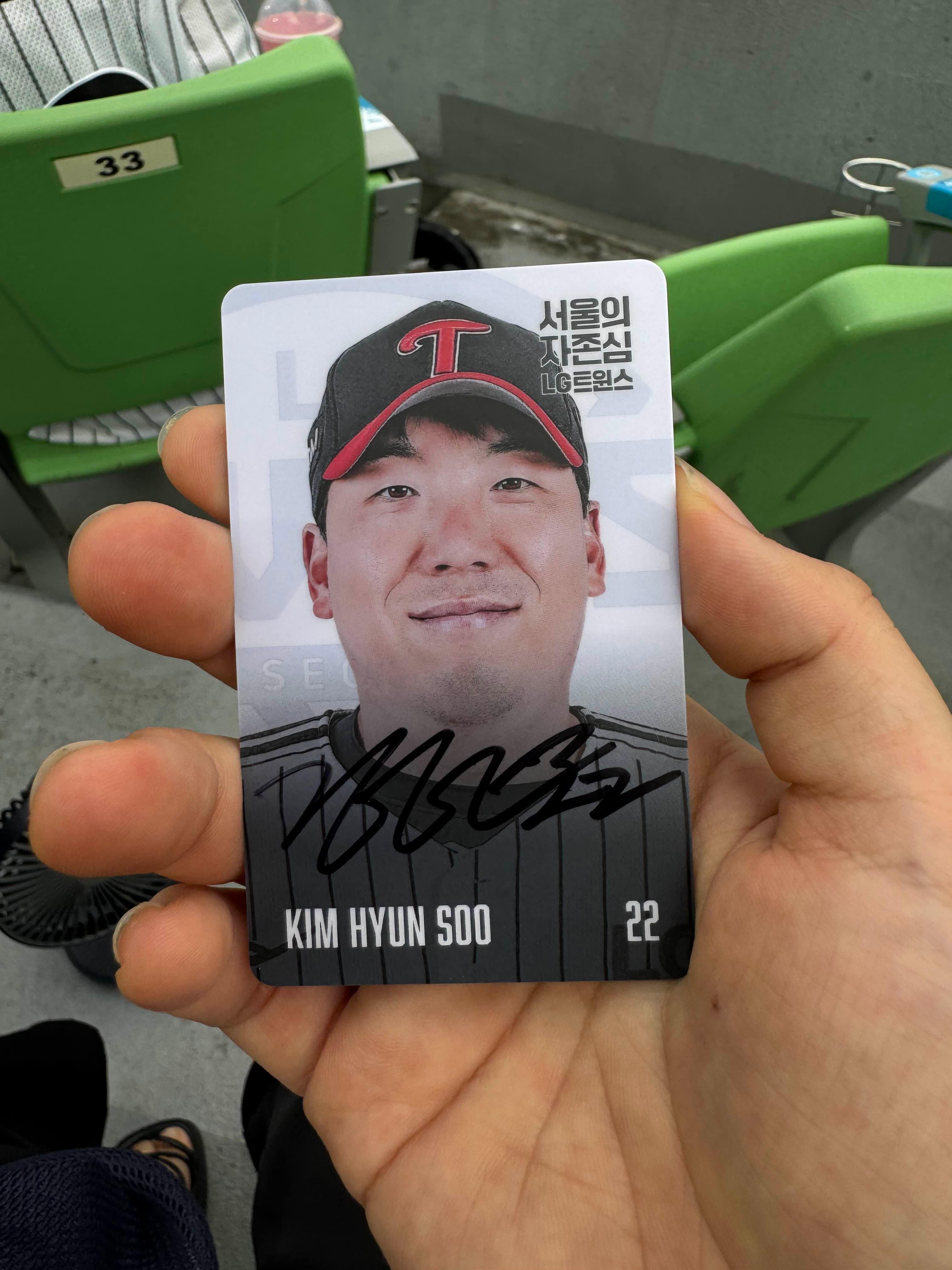 김현수 선수가 사인한 포토카드를 주고 가셨습니다