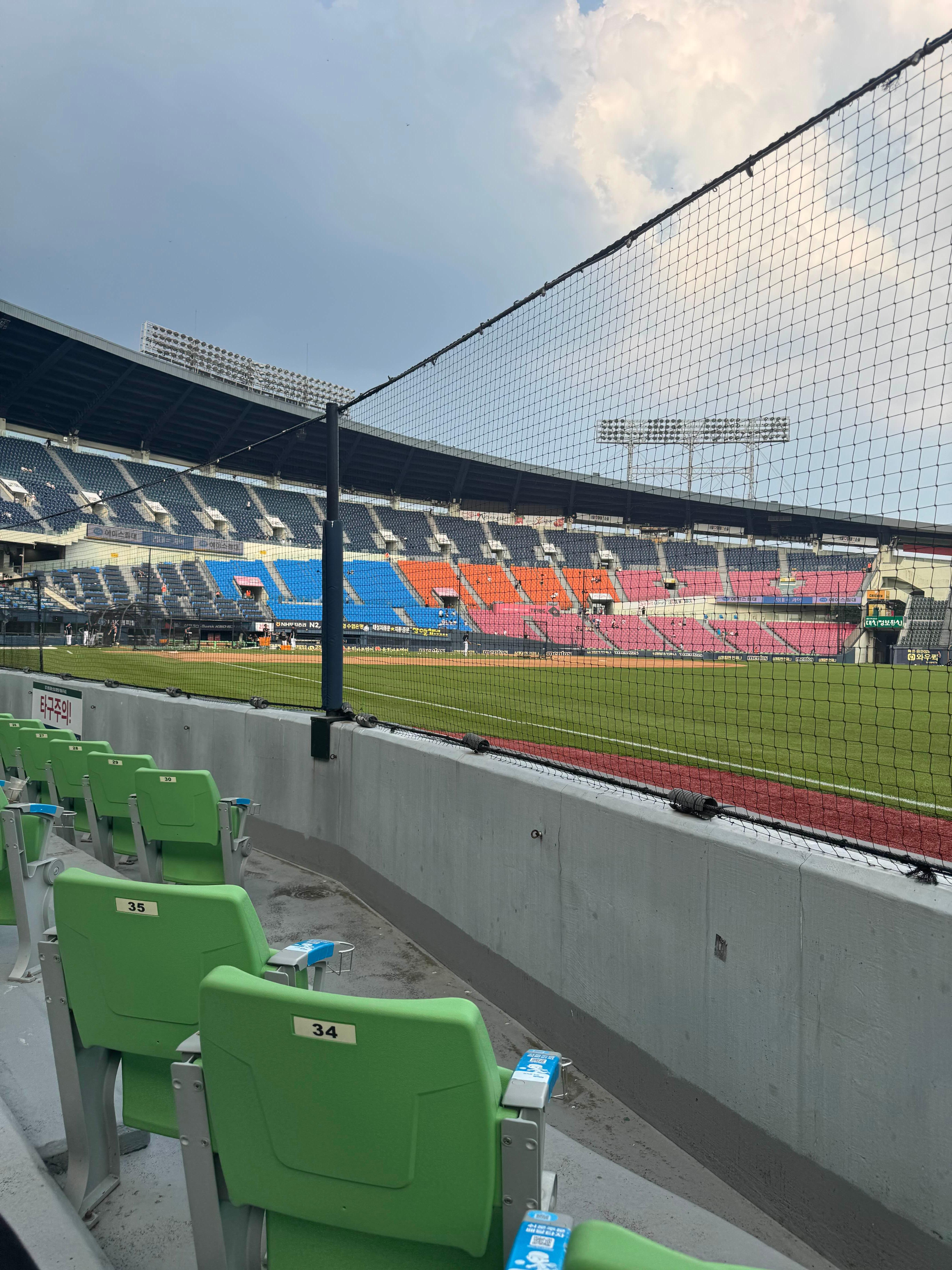 결론: 익사이팅석은 자리가 구분되어 있어 다른 좌석보다 넓게 앉을 수 있다. 다만 잠실에서는 사인 받기는 어려운 구조이다.